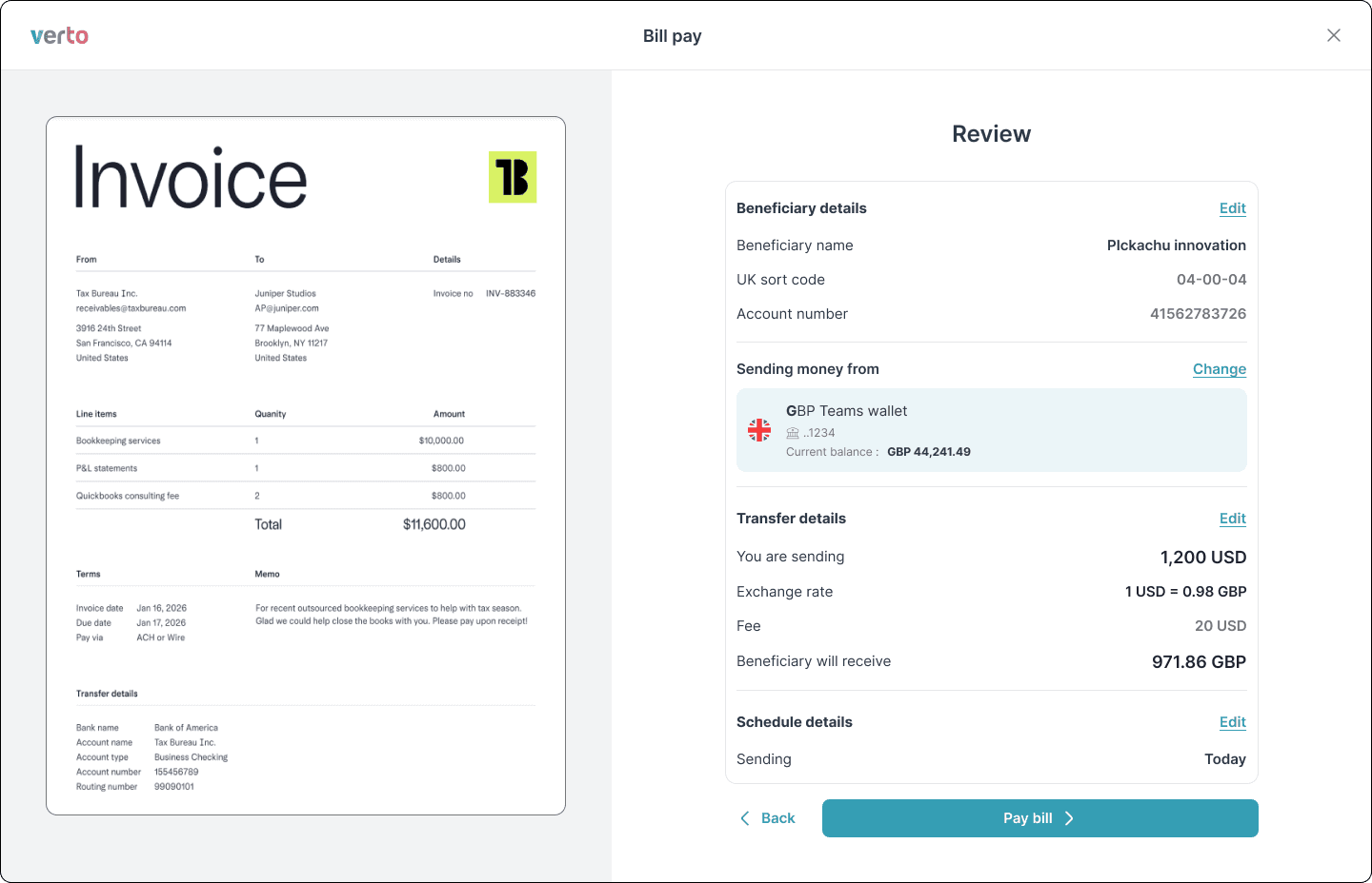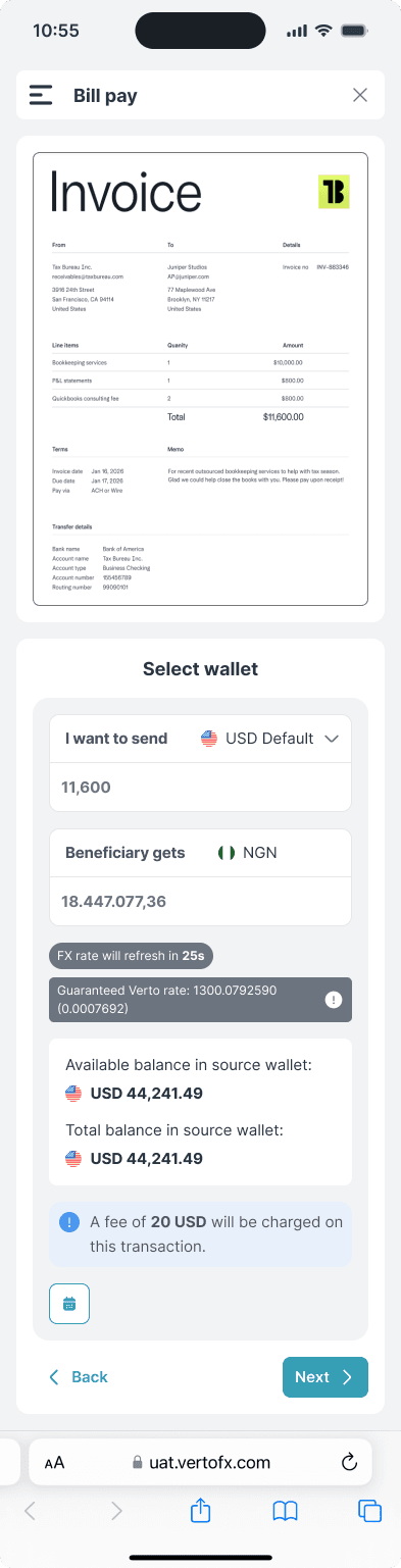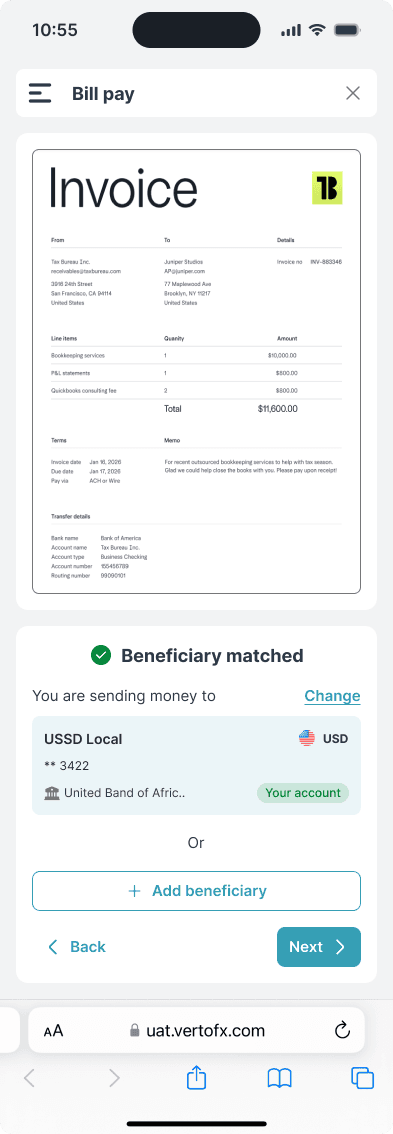 BillPay is a B2B fintech product helping businesses manage and pay invoices across vendors, currencies, and markets.