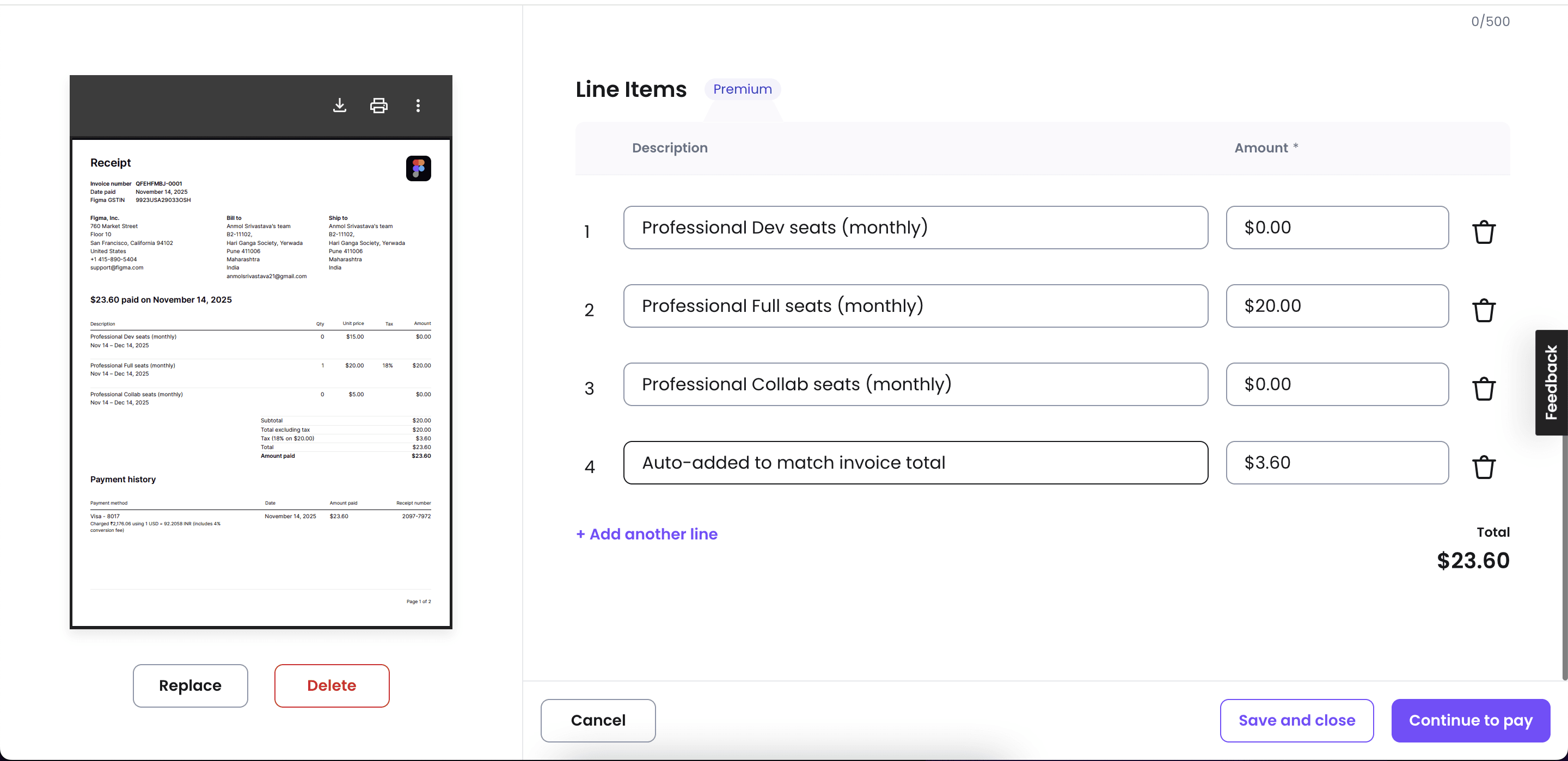 uploading the invoice