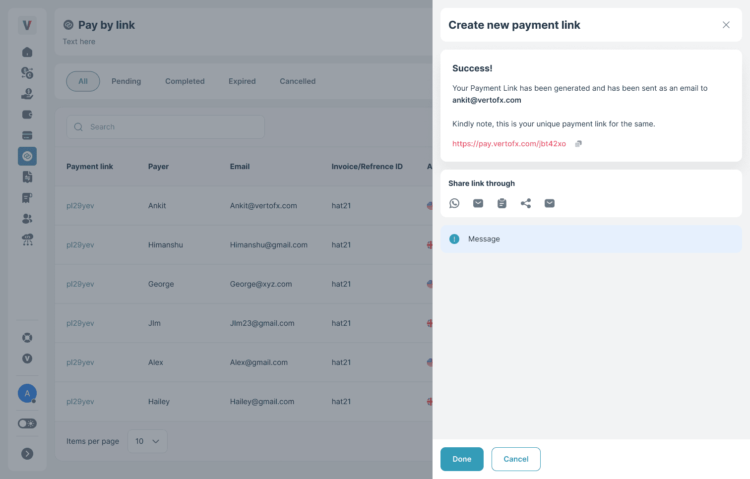 Every payment row included contextual actions like resend, cancel, deactivate, and copy. This reduced dependency on support teams and turned the dashboard into an operational control center rather than a passive tracker.