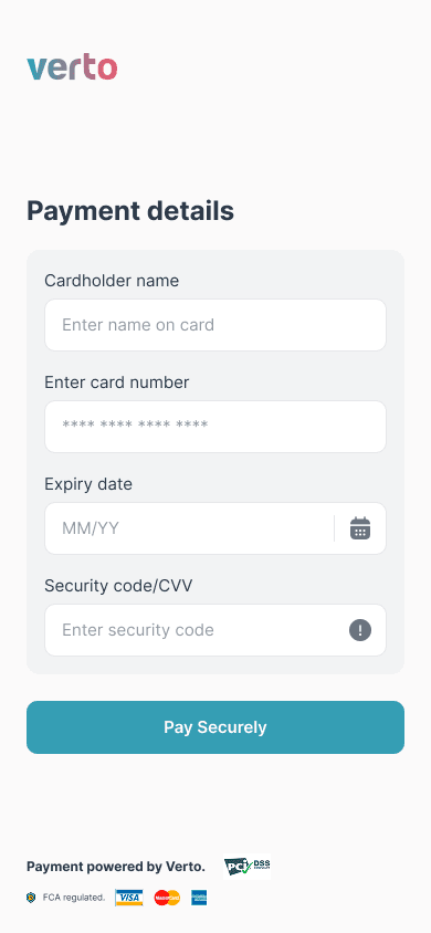 The hosted payment page was intentionally minimal, with no account creation and no unnecessary steps. A simple, secure card checkout flow improved completion rates and reduced drop-offs.