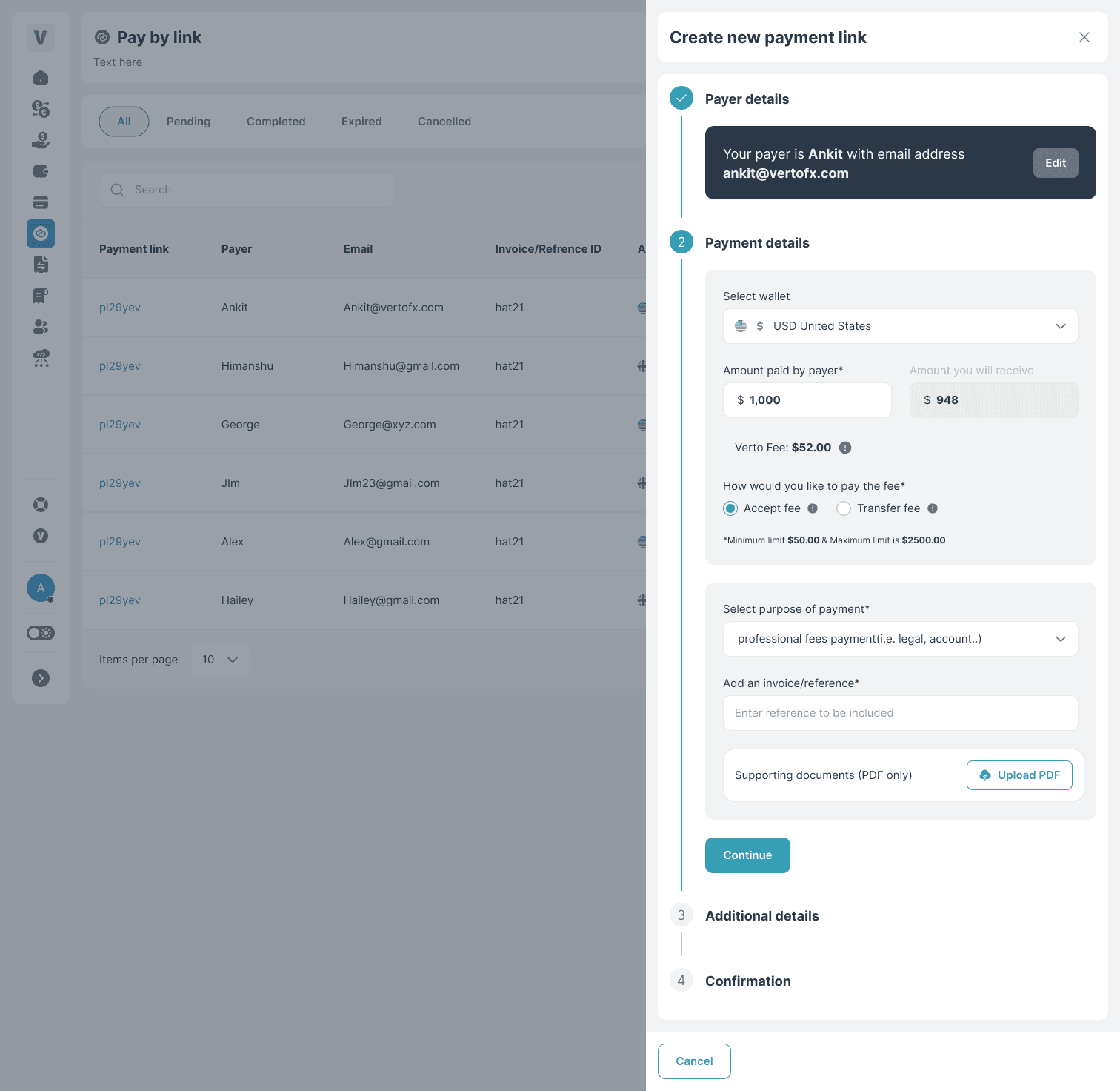Verto already offered invoice-based BillPay, but there was a growing need for a simpler, faster way to request payments, especially for ad-hoc collections, recurring vendor requests, or international payees.