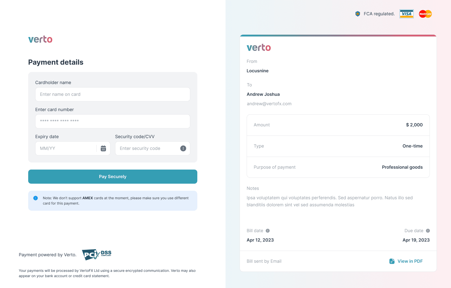 Payee flow must be frictionless: No account creation, no unnecessary steps, a simple card checkout increases completion rates.